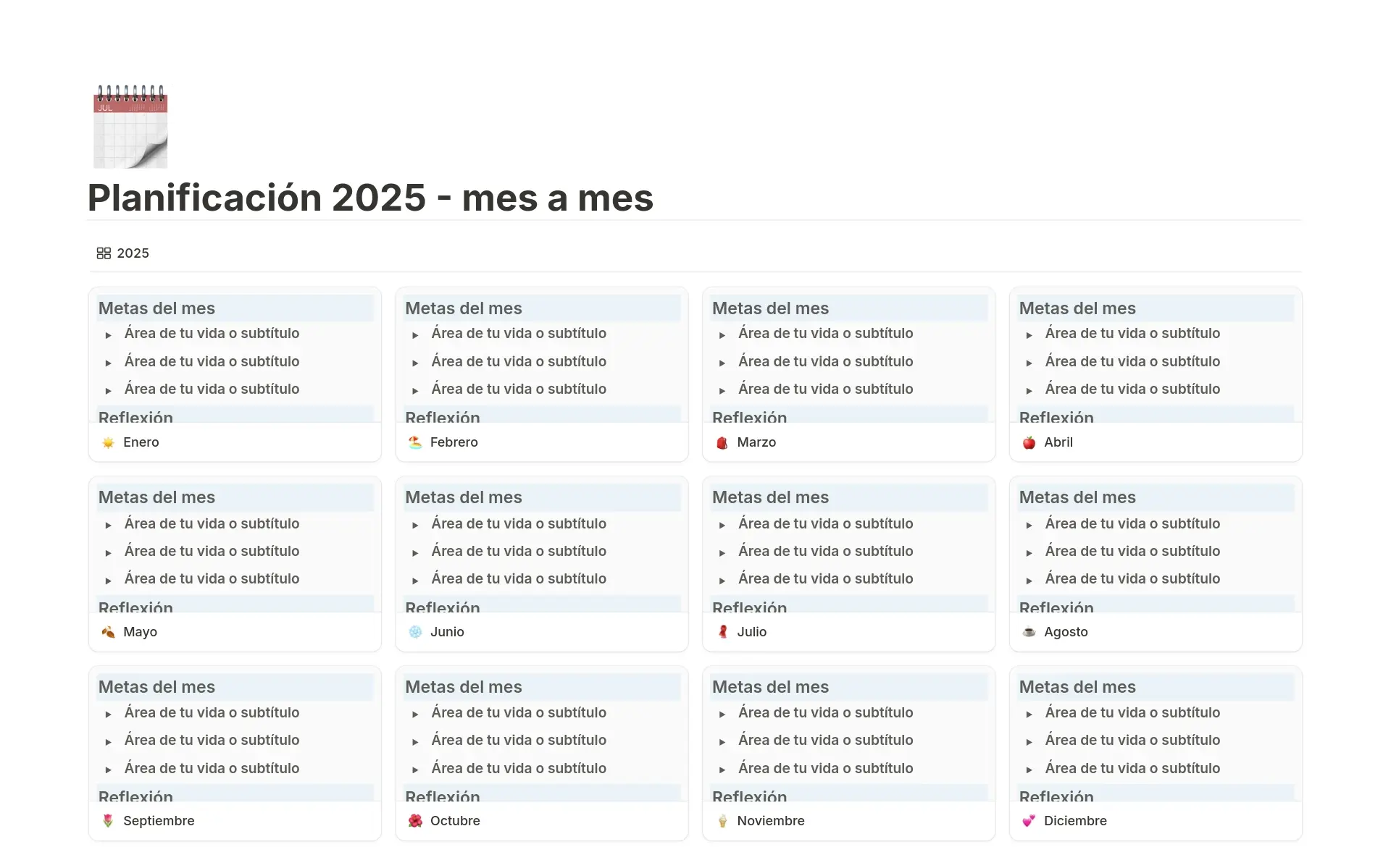Una vez que hayas agregado una plantilla a tu espacio de trabajo, tienes infinitas opciones para cambiar, editar o actualizar lo que necesites. Las plantillas son solo un punto de partida para ayudarte a crear tu espacio de trabajo ideal.
